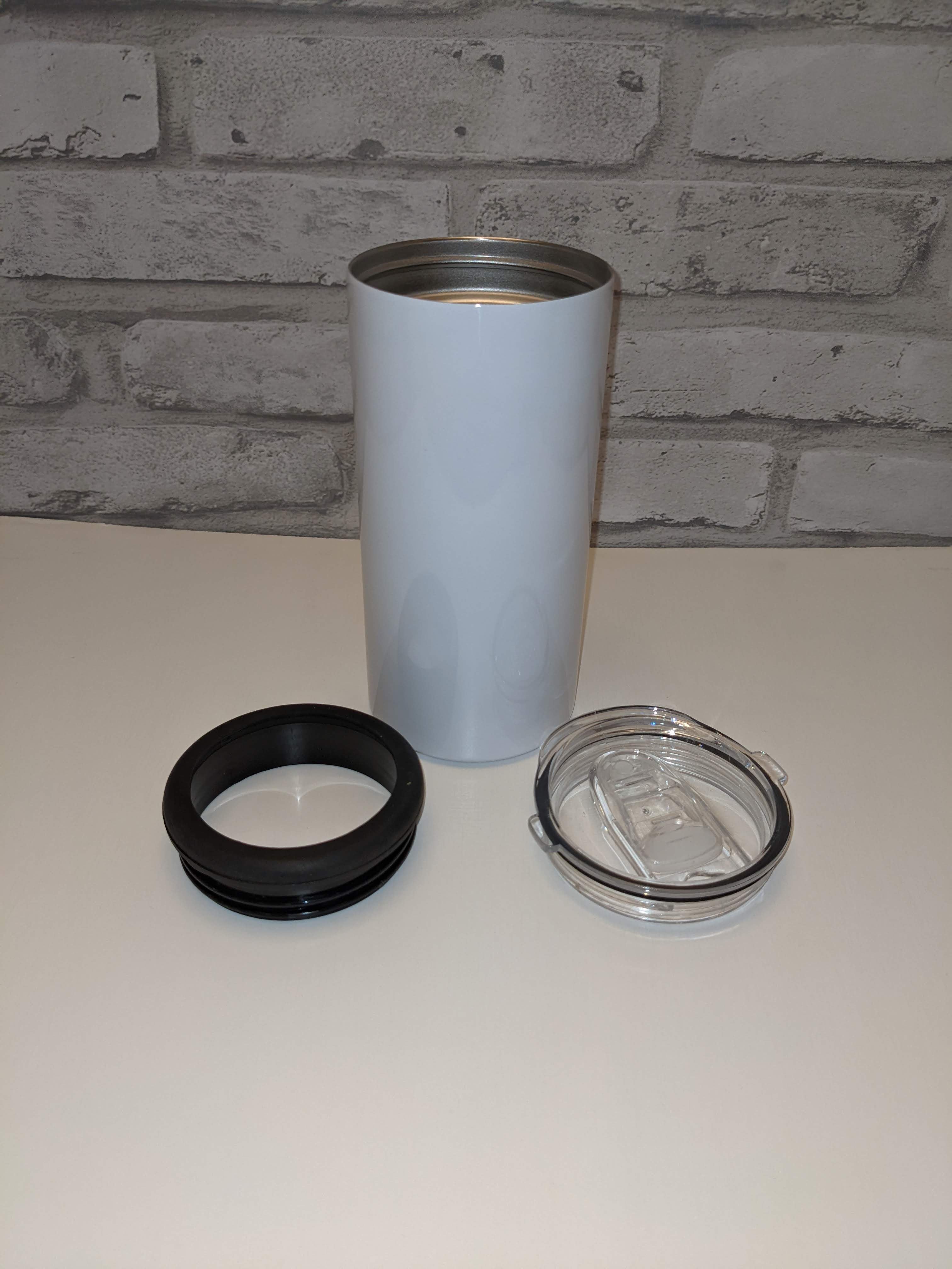 Stainless steel doubled-walled can cooler to keep your drinks cold. Sublimate your design onto the outside.